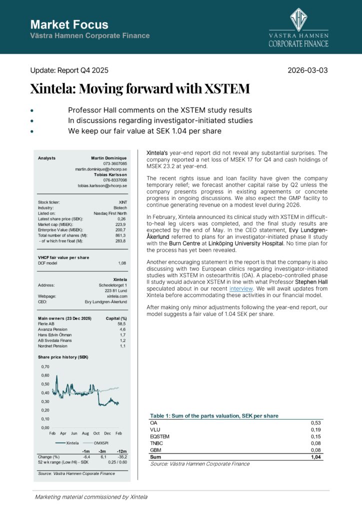 Västra Hamnen Corporate Finance har publicerat en analys av Xintela.