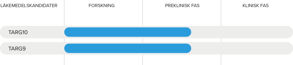 Targinta utvärderar möjligheten att utveckla TARG9 och TARG10 för ytterligare cancerformer utöver trippelnegativ bröstcancer och glioblastom. Målmolekylen integrin α10β1 uttrycks även vid t.ex. lungcancer, prostatacancer, bukspottkörtelcancer och vid visa former av sarkom, vilket ger möjligheter att bredda användningen av Bolagets läkemedelskandidater.